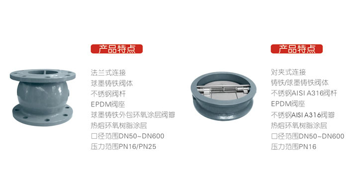 消聲(sheng)止回閥(硬(ying)密封中心(xīn)導向結構(gòu)法蘭式及(ji)對夾⁉️式連(lian)接)