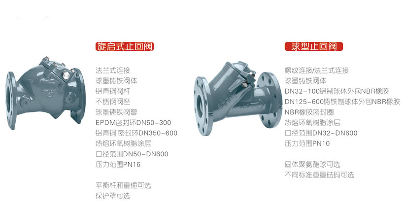 止回(hui)閥(旋啟式(shi)止回閥、球(qiú)型止回閥(fa))